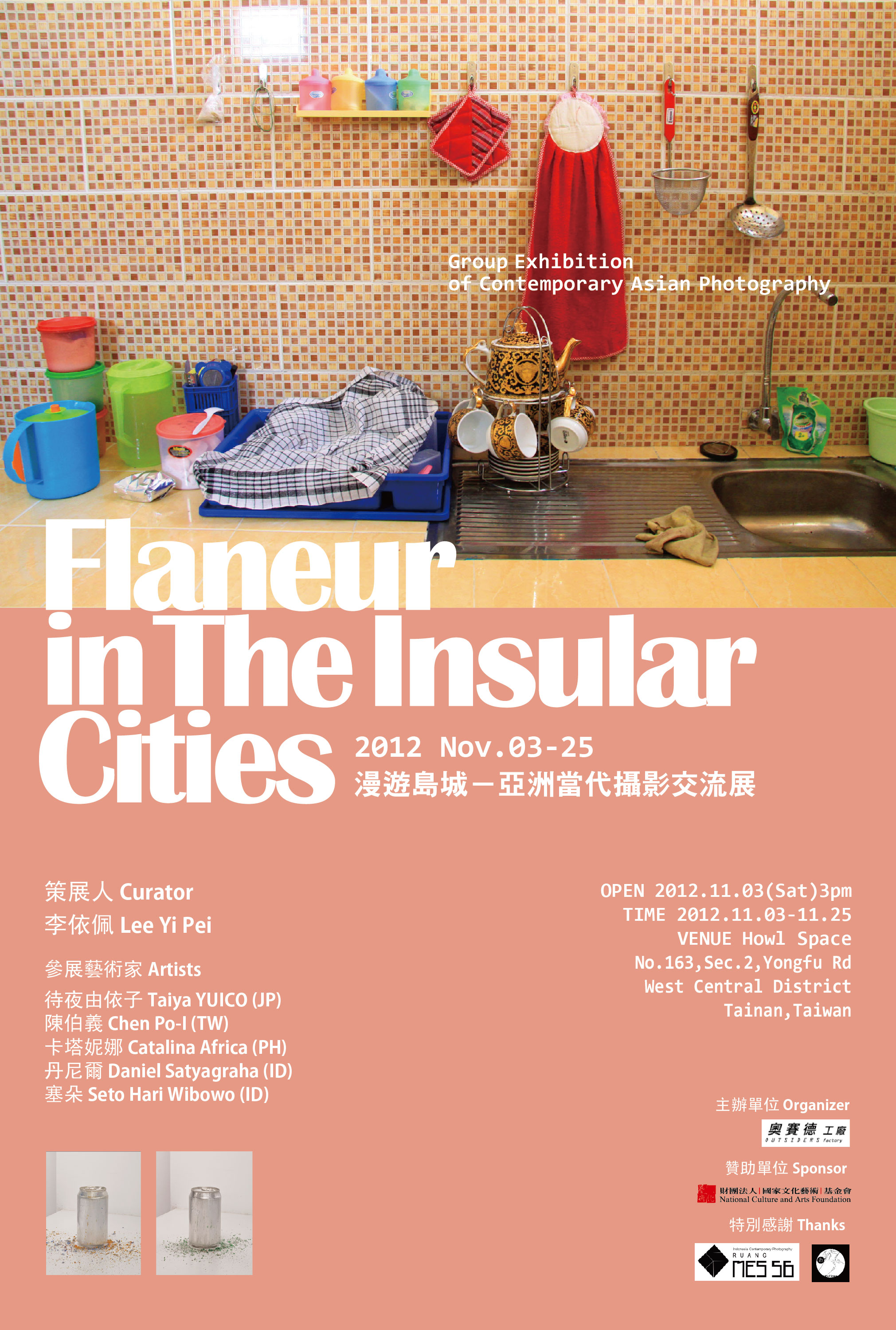 「Flaneur in the Insular Cities- The Group Exhibition of Contemporary Asian Photography」invites five emerging artists from Asia insular cities, including TAIYA Yuico, (Osaka, Japan), CHEN Po-I, (Tainan, Taiwan), Catalina AFRICA (Manila, Philippines) and Daniel SATYAGRAHA, Seto Hari Wibowo (Yogyakarta, Indonesia) to observe their cities and present how the city it is by surveying the transformation of Asian insular cities which are full of cultural heritages. Through experimental method, the exhibition is going to create new space to develop dialogue.
