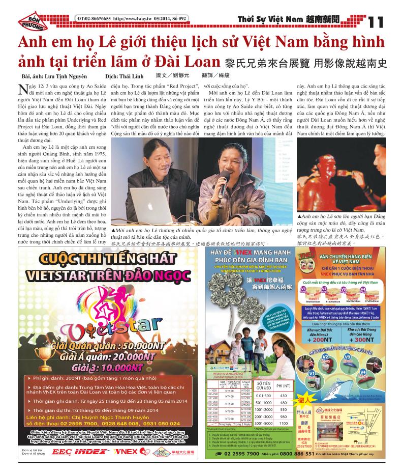 Ngày 12/ 3 vừa qua công ty Ao Saide đã mời anh em nghệ thuật gia họ Lê người Việt Nam đến Đài Loan tham dự Hội giao lưu nghệ thuật Việt Đài. Ngày hôm đó anh em họ Lê đã cho công chiếu lần đầu tác phẩm phim Underlying và Red Project tại Đài Loan, đồng thời tham gia thảo luận cùng hơn 20 quan khách về nghệ thuật đương đại.