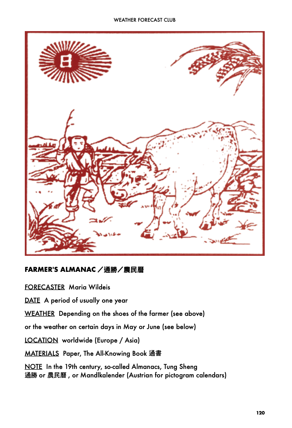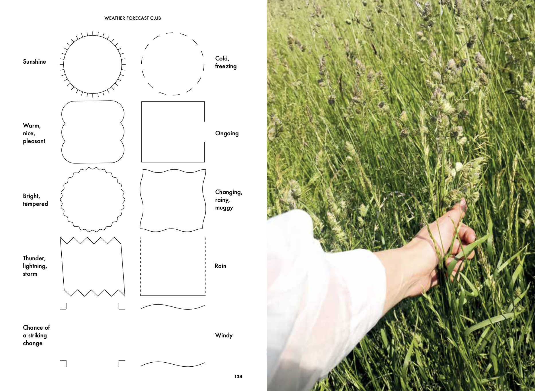 書中涵蓋藝術家們發展出來的三條主線:透過實體書信於台灣與歐洲間的寄送,傳遞了彼此的回應 (LETTER EXCHANGE CLUB);藉由烹飪、探討橫跨阿爾巴尼亞、德國、奧地利、台灣的食材所啟發的異國食譜,探討國家主義、去殖民、創建新聯合國度 (COOKING AS A METHOD);最後藝術家藉由不同角色的帶入,如預報員、推測者、指導員、旁觀者,或與天氣專家間的非典型互動中建構出關於自然的資訊處理 (WEATHER FORECAST CLUB)。