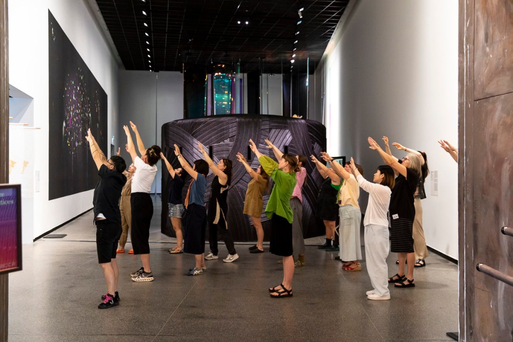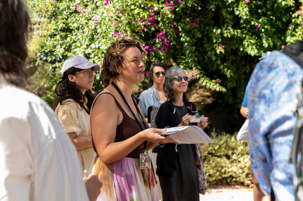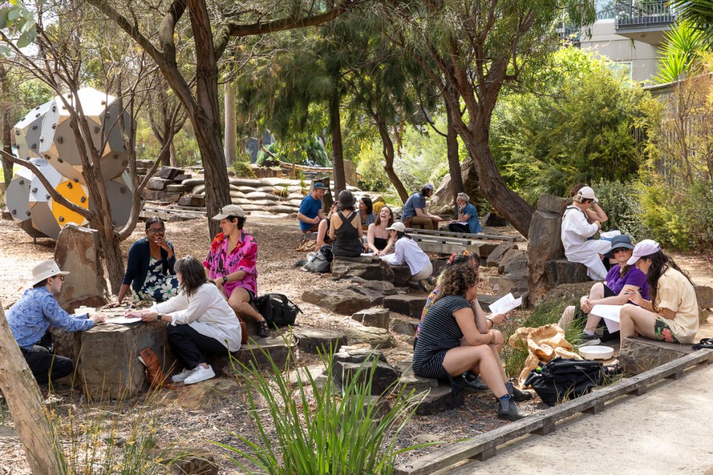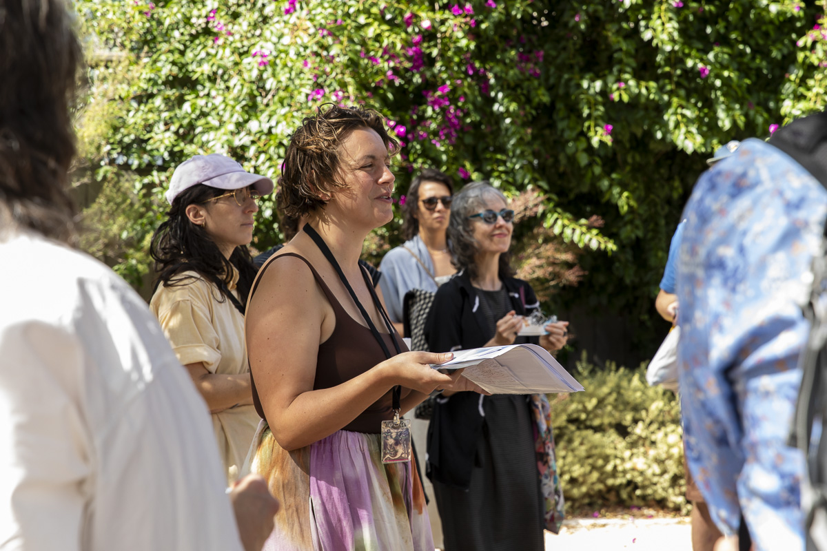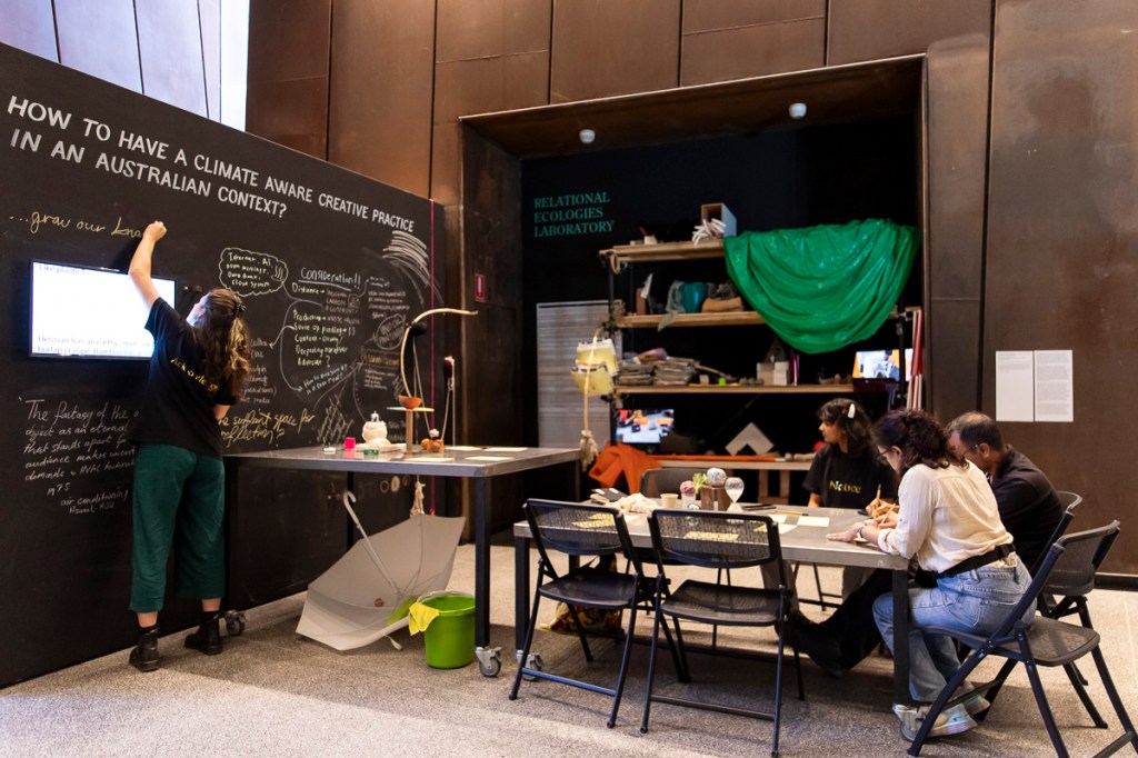 “Curating Relational Ecologies alongside Tristen Harwood and Tara McDowell exemplified this collaborative approach to climate-aware practice. The intensive brought together the nation-wide Climate Aware Creative Practices Network for a program of workshops, panel discussions, and performances at ACCA, questioning how we study and teach climate-aware creative practices with a special focus on Indigenous land justice. Tristen led a yarning circle model with guest presenters Lauren Burrow, Laniyuk, Micaela Sahhar and Brooke Wandin to facilitate shared knowledge building around land-back and ecologically legible art practices, The program extended into collaborative actions: Jakarta-based artist duo Tita Salina and Irwan Ahmett led an hour-long walking procession around the Birrarung, whilst other sessions included dancerly and writerly forecasting practices around weather instability with Jo Pollitt, tarot reading as ‘affective cartography’ with Annie Murney and workshops with local succulents with Clare Milledge and Clare McCracken. The intensive emphasised what climate-aware artists do best: sharing, reworking and collaborating across precarious institutions while bringing deep curiosity and awareness of materials and processes—an experiment in collaboratively generating and modelling climate aware creative methodologies.
