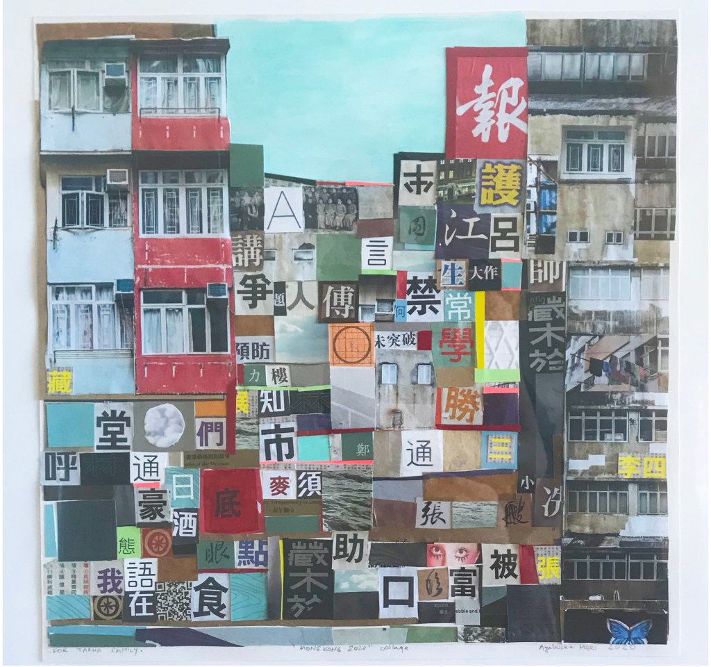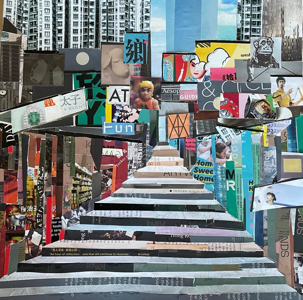 新的拼貼系列發想來自於她居住在香港七年,對這座城市的迷戀。香港 — 一座由網絡、手扶梯、立體廣告和巨大連通性所組成的城市,它的多樣性永不停息。這多層次的城市中,它的建築充滿色彩和元素,在自然的組構下形成了一種獨特的拼貼。