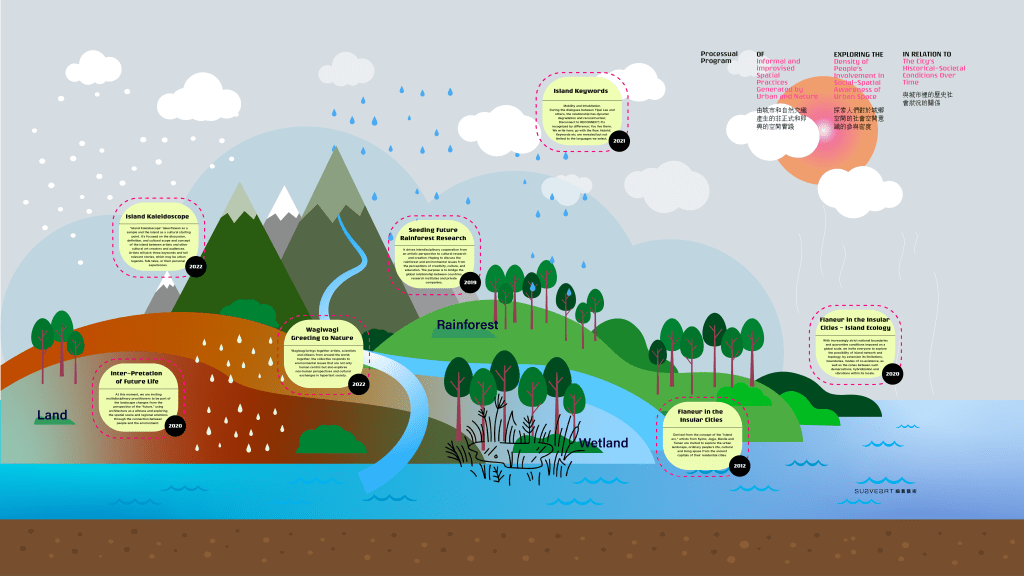 The “Ecoscapes” program delves into the exploration of island ecosystems from a non- human-centered perspectives. By foregrounding the natural environment and its inhabitants, our artistic endeavors challenge conventional notions of human dominance and control, fostering a deeper appreciation for ecological interconnectedness. Through mediums such as nature, material, and creativity, our diverse programs illuminate the shared narratives of Asian communities, tracing their migratory journeys and cultural exchanges.