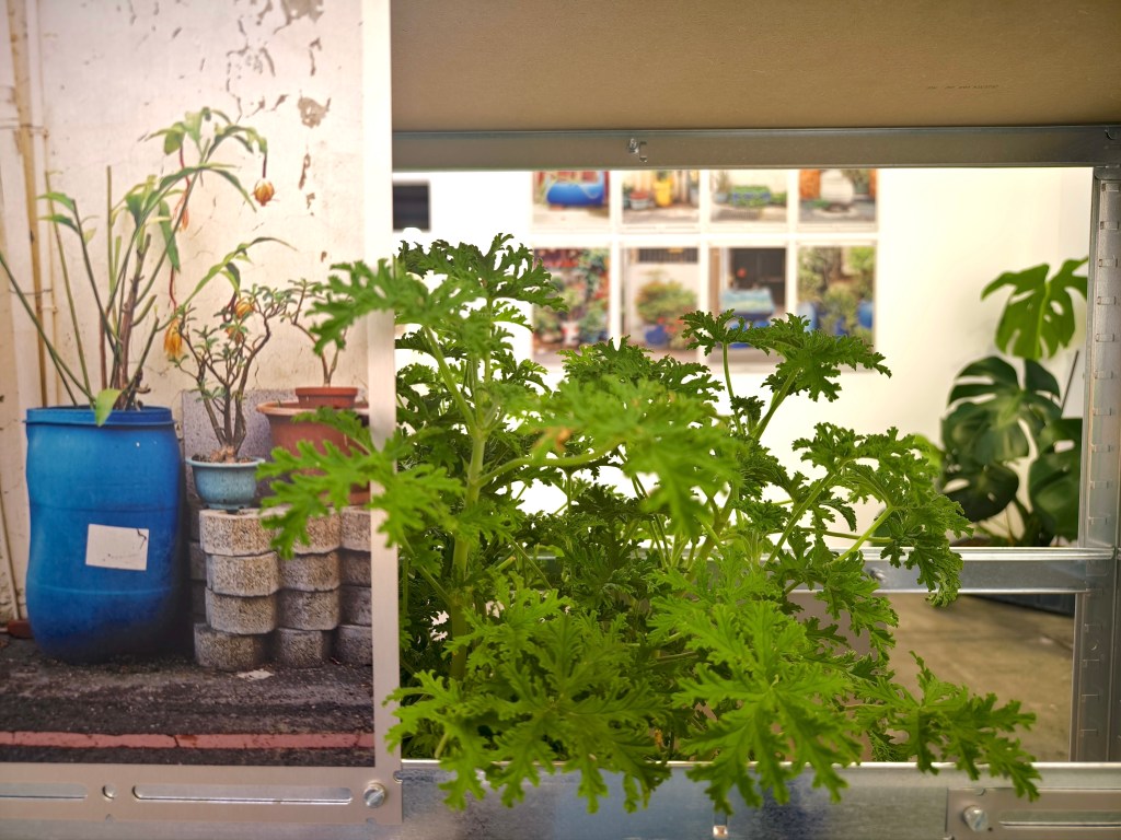 In Taiwan, the boundary between industrial and agricultural, and the dividing of communities and factories, are commonly blurred; in other words, they all grow together. In addition to the past policy of “House as a factory”, those factory containers were not unfamiliar to the neighbors. By the folk wisdom of discovering the other uses for things, some ousted containers were taken and turned into plant pots. This is a virtue of no waste, as well as the aesthetic of alternatives. The decommissioned plasticware becomes a negligible favour offer to the neighbors, and the plebeians gain a small compensation from the irregular industrial next door. The plants in the polydrum pot are really rooted in compromise. Although the community surroundings are not sophisticated or exactly appropriated, the opulence of the natural conditions of Taiwan allows them to thrive.