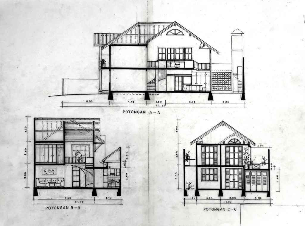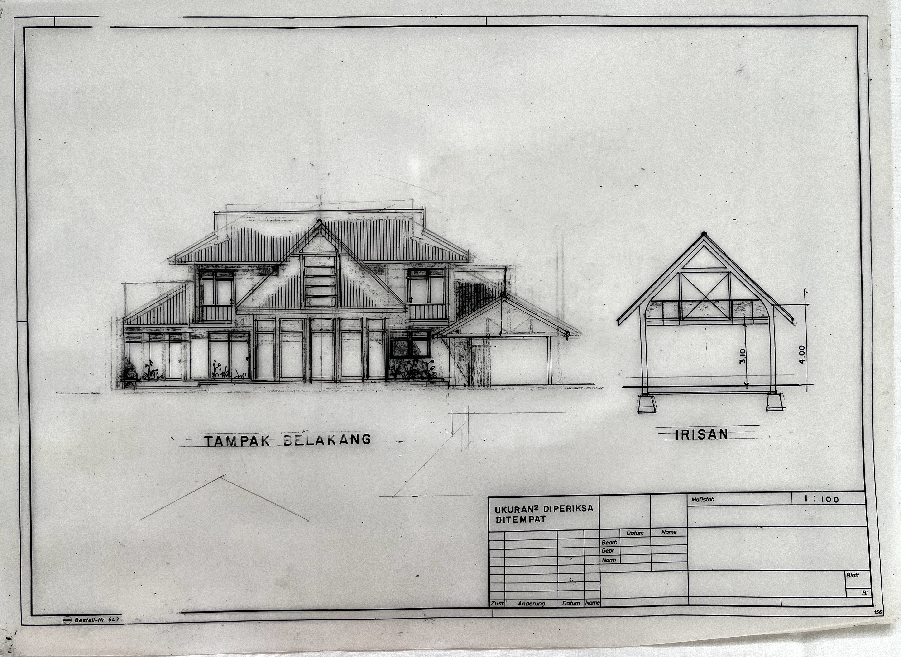 The residential house project in Magelang, Central Java (1987), designed by Herianto Sulindro. We discovered a series of materials, including models, blueprints, and over four interior design plans, along with site visit photos. Courtesy of the Kho Family.